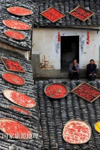 國(guó)家旅游地理 安徽黃山11月11日訊 11月10日,黃山市歙縣霞坑鎮(zhèn)湖山村住戶的屋頂晾曬著各種農(nóng)作物。秋末冬初,安徽省皖南黃山市歙縣鄉(xiāng)村農(nóng)戶種植的玉米、南瓜、辣椒等農(nóng)作物陸續(xù)收獲,古村中房前屋后、庭院屋頂曬滿果實(shí),構(gòu)成一幅幅美麗的“曬秋圖”。 /新華社發(fā)(施廣德 攝)