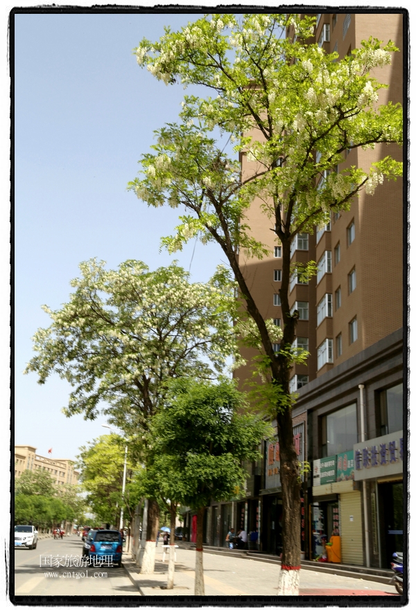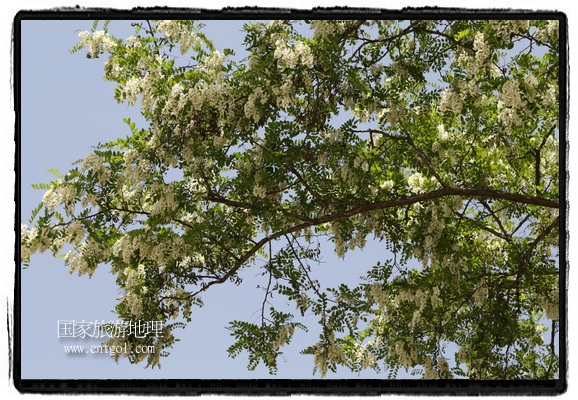 國(guó)家旅游地理 甘肅平?jīng)?月31日訊(通訊員 鄭兵 攝影報(bào)道)日前,甘肅省平?jīng)鍪谐菂^(qū)各大主要街道兩旁的槐樹(shù)開(kāi)滿花朵,一簇一簇,一串一串,白的像雪,美得像畫(huà),冰肌綽約,清素高雅,滿街道彌漫著槐花的馥郁香氣,讓來(lái)往的行人為之陶醉。宋朝大文豪蘇東坡曾有詩(shī)云:“槐林五月蕩瓊花,郁郁芬芳醉萬(wàn)家。”據(jù)悉,槐花除了觀賞意外,用槐花做的湯飯還有開(kāi)胃解毒瀉火等功效,是食藥兩用的的極品,被譽(yù)為“天賜的禮物”。