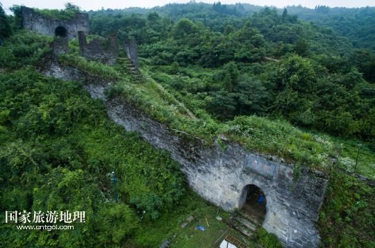 國家旅游地理 德國波恩7月4日訊 從空中看貴州播州海龍屯飛鳳關(guān)(7月3日攝)。海龍屯遺址位于遵義老城北約30里的龍巖山東麓,始建于1257年,毀于1600年。遺址所在山峰相對(duì)高度約350米,三面環(huán)水,一面銜山,地勢(shì)險(xiǎn)要,如今周長約6公里的環(huán)囤城墻尚存,囤東銅柱、鐵柱、飛虎、飛龍、朝天、飛鳳六關(guān),囤西后關(guān)、西關(guān)、萬安三關(guān)依然屹立。囤頂平闊,囤內(nèi)遺有“老王宮”和“新王宮”兩組重要建筑基址,面積均在2萬平方米左右,此外尚有金銀庫、四角亭、采石場、校場壩、環(huán)囤馬道和敵樓等遺跡。