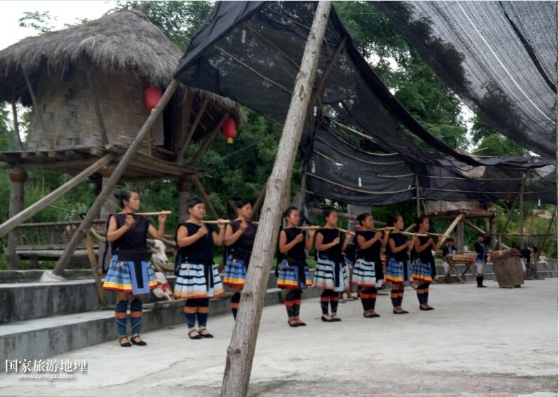 這是黔南荔波縣瑤寨姑娘在表演舞蹈。荔波瑤山白褲瑤是一個(gè)歷史悠久的古老民族,是一支長(zhǎng)期深居高山密林,過(guò)著刀耕火種,自給自足的封閉式狩獵民族,至今仍保存著母系氏族社會(huì)向父系氏族社會(huì)過(guò)渡的遠(yuǎn)古遺風(fēng),因其民族文化保存最完整而被聯(lián)合國(guó)科教文衛(wèi)組織賜予“人類(lèi)文明的活化石”之稱。又因其崇拜太陽(yáng)神,信奉百神靈,圖騰與遠(yuǎn)在大洋彼岸的印第安人極為相似而被外界稱為“東方印第安人”。