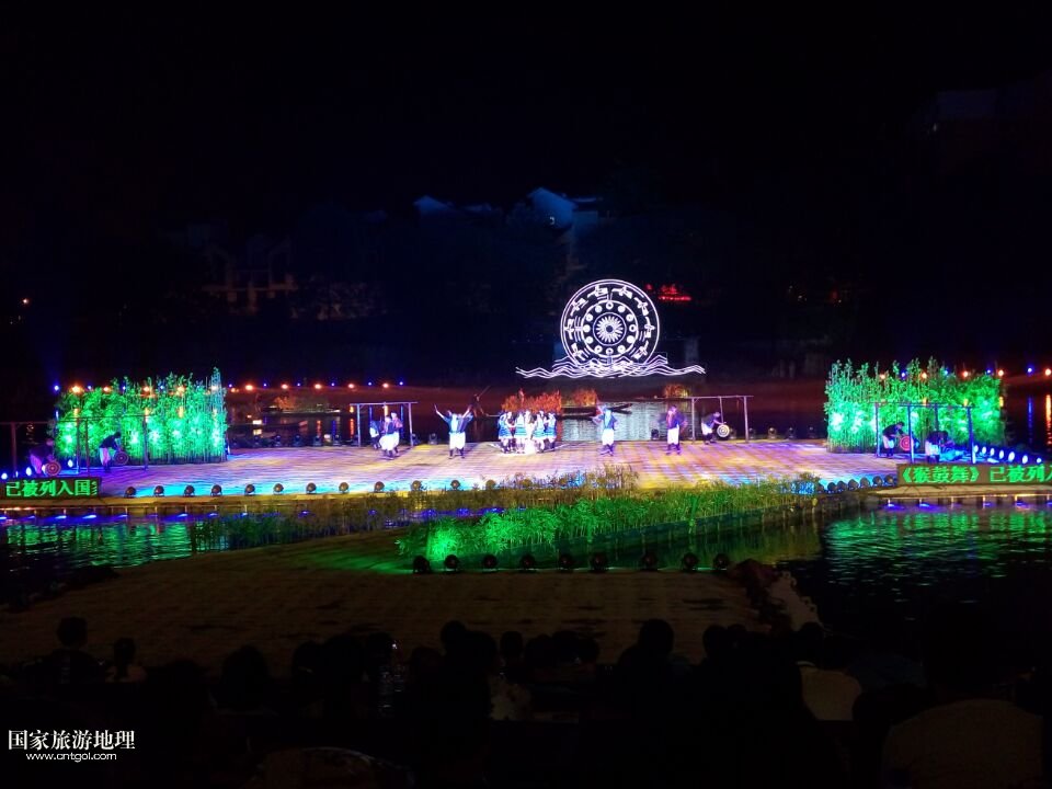 黔南之美,美在民俗風(fēng)情。黔南布依苗族自治州位于貴州的南部,這里居住著布依族、苗族、瑤族等少數(shù)民族,民俗風(fēng)情尤為濃郁。當(dāng)遠(yuǎn)方客人到來(lái)時(shí),熱情好客的少數(shù)民族會(huì)載歌載舞歡迎客人。進(jìn)入好花紅布依風(fēng)情寨前,客人要坐上木馬,喝上三杯攔門酒才能進(jìn)入寨中,所以即使不喝酒的人來(lái)到布依寨門前,在布依山歌熱情氛圍的包圍下仿佛都能豪情萬(wàn)丈,千杯不醉了。荔波白褲瑤的歡迎儀式的熱情之中,帶有一種野性之美。白褲瑤是有著狩獵傳統(tǒng)的民族,客人到來(lái)之時(shí),他們會(huì)拿出獵槍,放上幾槍,以示歡迎。除此之外,布依族、苗族、瑤族等特有的民族歌舞也別有風(fēng)味,布依族山歌《好花紅》,苗族的長(zhǎng)衫龍?zhí)J笙舞、蘆笙長(zhǎng)鼓舞,瑤族的猴鼓舞、銅鼓舞等等。一臺(tái)原生態(tài)的《水韻樟江》民族歌舞實(shí)景演出,更是把布依族、苗族、瑤族等少數(shù)民族的民俗生活展現(xiàn)的淋漓盡致,讓人目不暇接?!端嵳两返奈枧_(tái)設(shè)在水上,演員上臺(tái)都是從兩邊劃著小船登上舞臺(tái),特有的民族歌舞配上現(xiàn)代化的燈光效果,給人以原生態(tài)民族歌舞大片的視覺震撼感。