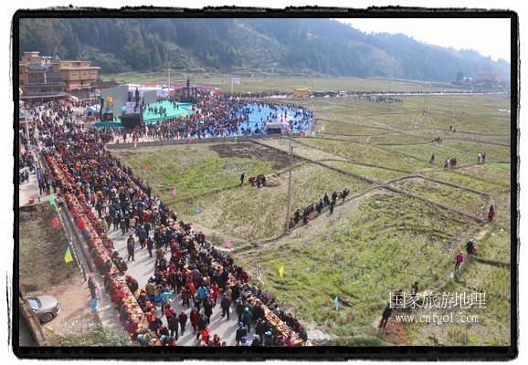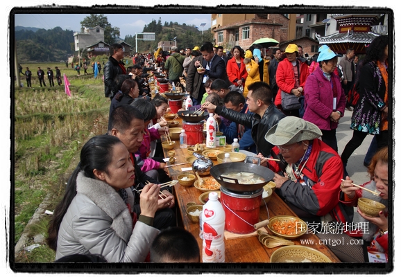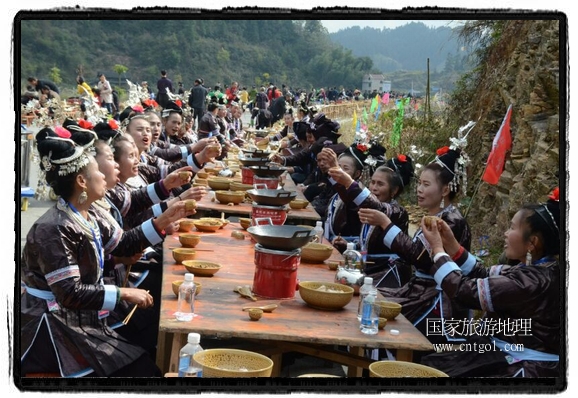 今年黎平侗年節(jié),除了延續(xù)亙古以來老百姓過侗年的各項(xiàng)傳統(tǒng)習(xí)俗活動(dòng)外,還有“天下侗家年”大型侗族史詩情景歌舞展演、侗族萬人長(zhǎng)桌宴、招商引資推介會(huì)、七彩田園采摘體驗(yàn)、百村集市商品展銷、侗文化研討會(huì)、楊再思文化交流研討會(huì)等多項(xiàng)主題活動(dòng),其中,主打主推的“最大合攏宴”(萬人長(zhǎng)桌宴)品牌,得到基尼斯紀(jì)錄總部到現(xiàn)場(chǎng)認(rèn)定,以1700桌合攏宴,總長(zhǎng)3.7公里,10380人同桌就餐,創(chuàng)歷史之最,成功載入《基尼斯紀(jì)錄大全》,吸引數(shù)萬旅游客到場(chǎng)親自見證、參與、感受和體驗(yàn)這一千載難逢,氣勢(shì)恢宏的盛況。